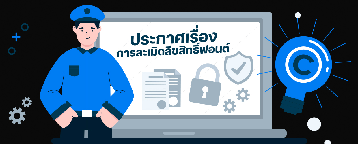 ทางบริษัทขอแจ้งให้ทราบว่า การละเมิดลิขสิทธิ์ฟอนต์
